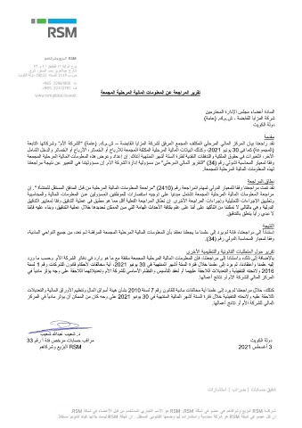 نإ ." ةأشنملل لقتسملا ققدملا لبق نم ةيلحرملا ةيلاملا تامولعملا ةعجارم" ) 2410 ( مقر ةعجارملا ماهمل يلودلا رايعملل اقفو انتعجارم تمت دقل