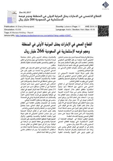 الفرص الاستثمارية التي يوفرها القطاع الصحي السعودي تقدر بـ 266 مليار ريال سعودي