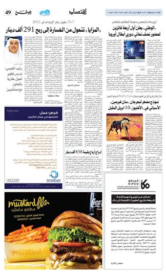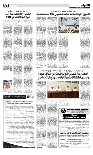 Mr. Al Nafisi added that the volume of payables decreased from USD 128.9m to USD 61.9m by the end of 2012, and Al Mazaya and its team were able to achieve a 77% increase in rental revenues generated from its income-producing projects, amounting to USD10.1 m in 2012 compared to USD 5.7m in 2011.