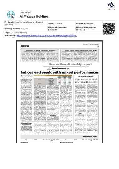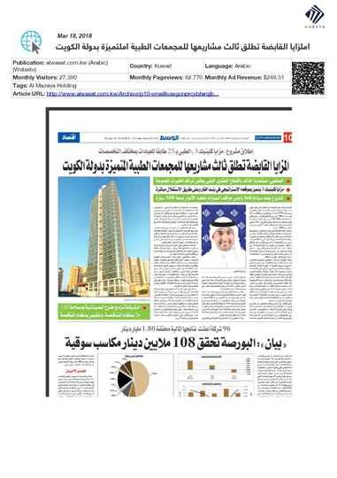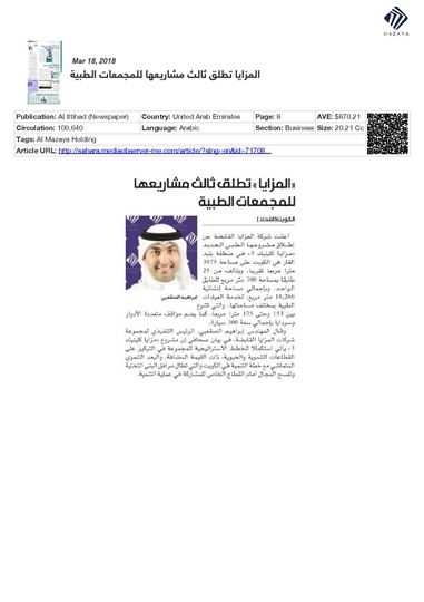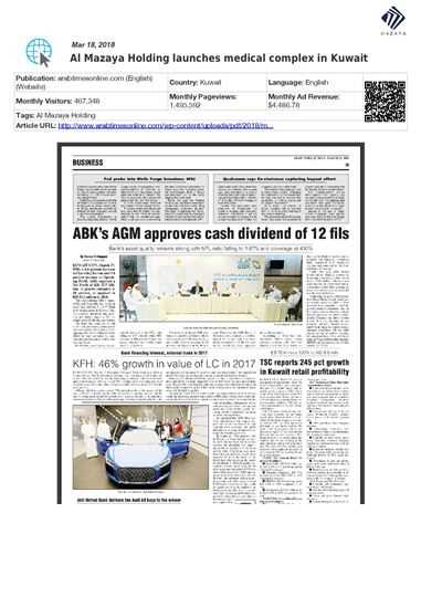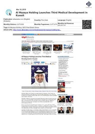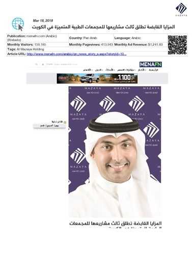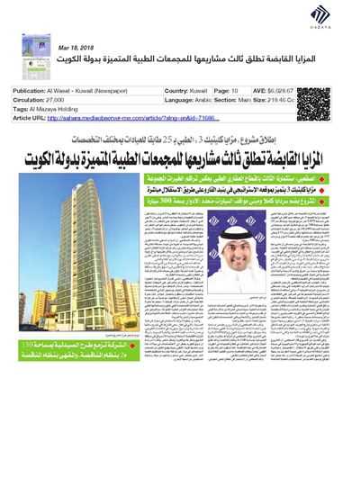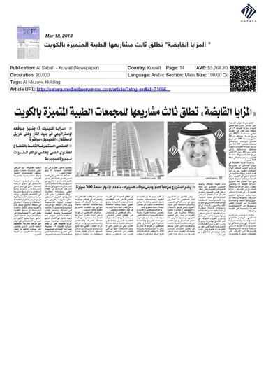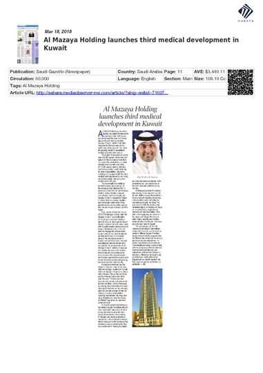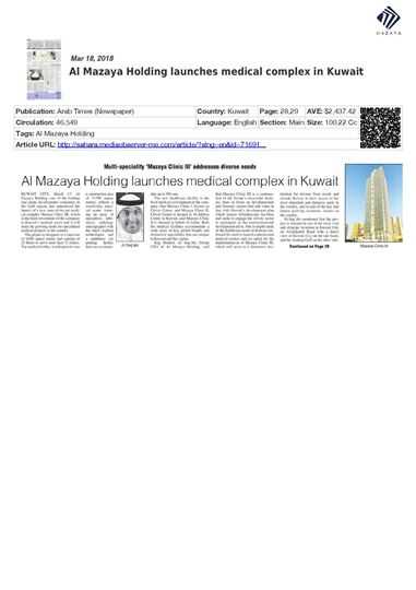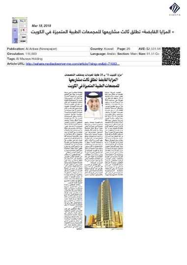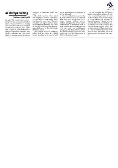 He added that Al Mazaya's investment in the healthcare sector comes in line with the company's efforts to diversify its investment portfolio and consolidate its contributions to Kuwait’s economy, following a thorough study by Al Mazaya Holding Research Department on market needs in the Gulf region in general and Kuwait in particular.
