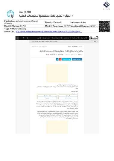 Al Mazaya provides this real estate offering to the market in a different and distinctive way that enables it to be among the leading companies in the medical sector, including its real estate products, he noted.